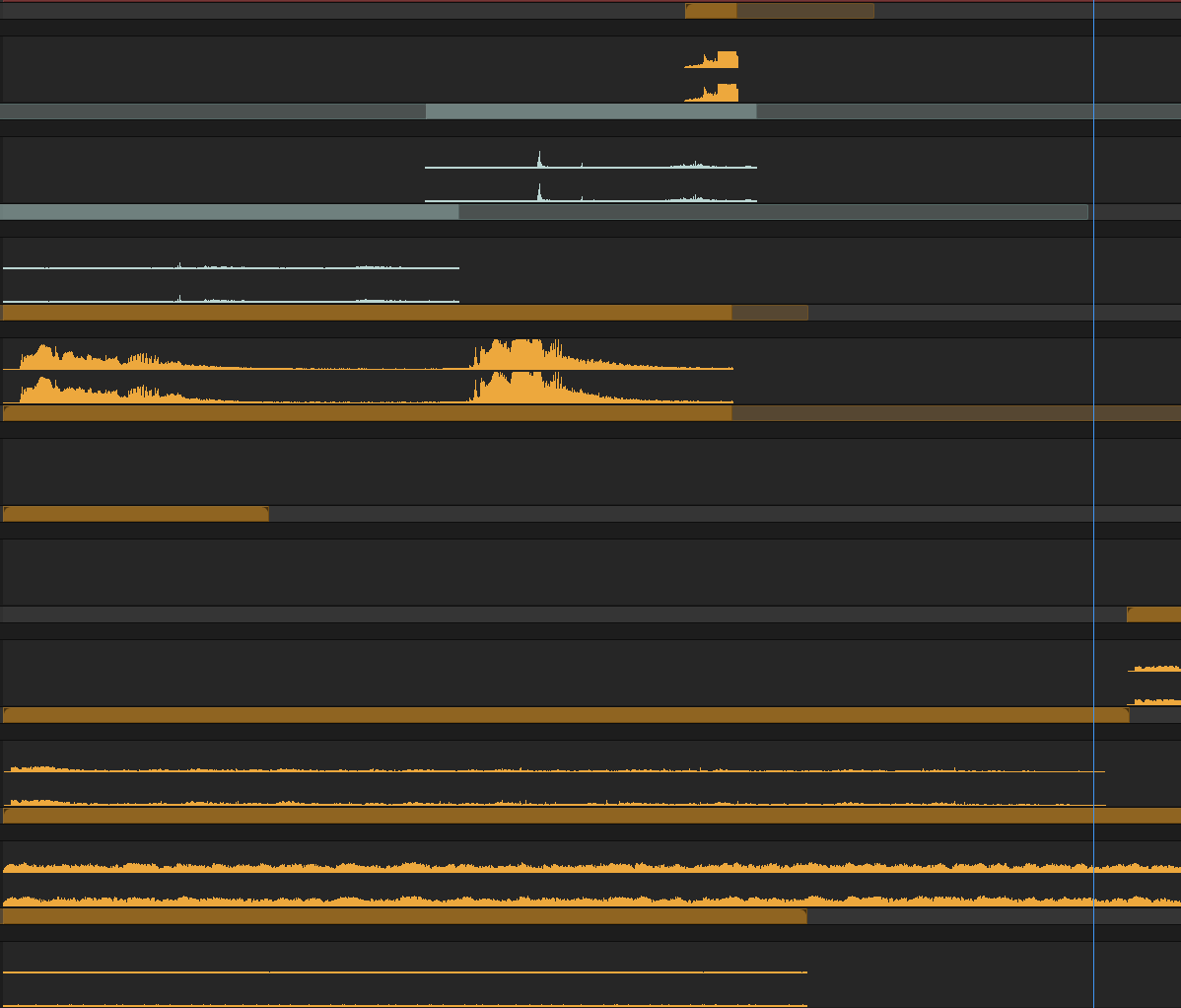 Две голосовые дорожки: закадровая и для персонажа, плюс фон, шумы, микширование. И все для того, чтобы сцена “жила”.